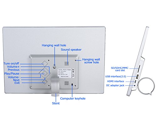 - ? Estructuras y accesorios: cáscara de metal ultrafino de 12,1 pulgadas, IPS1280 * 800, puerto HDMI, ranura para tarjeta SD / SDHC / MMC, USB 2.0, marco digital con mando a distancia. Incluye marco de imagen digital, control remoto (batería incluida), soporte, adaptador de red 5.0V / 1.0A, guía del usuario, cajas de regalo.